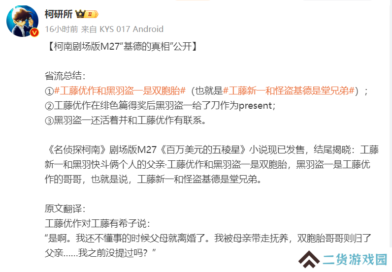 点开一看【青山老贼承认黑羽快斗(基德)和工藤新一(柯南)是堂兄弟!柯基CP变骨科!】——我:啊????