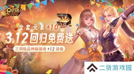 为庆贺品牌日,庆典期间(3月12日维护后~4月8日23:59),直接送回归玩家全套开3洞、元素属性+10、魔魂+12的极品神器。现有玩家招募回归玩家,可享受同等装备,直接获得60点元素属性。好友携手,荣耀与共!