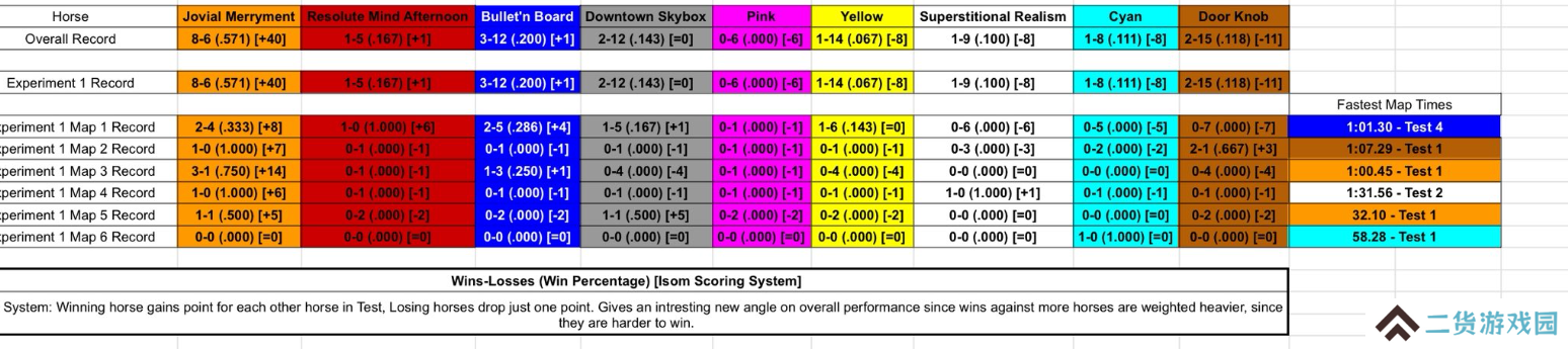但你别说,有些**表现还真给人留下了一点小小的震撼,成了广为流传的明星选手,比较有代表性的当属橙马Jovial Merryment(简称JM),实际上在早期版本,这些马并没有单独的名字,全都是用颜色来命名的,在机制的不断完善下,赛事在4月7日更新了一条新规矩,只有胜者才配拥有自己的名字,而在以往的比赛中冠军席位通常都会被橙马拿下,因此JM的大名才得以在观众间流传。