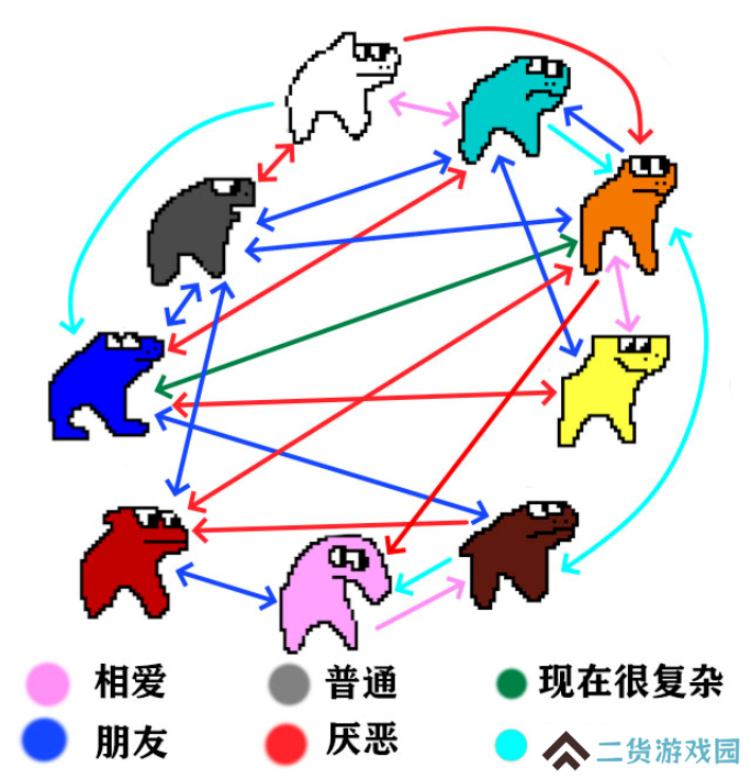除了搞CP,不同颜色的马相互之间还有很多复杂的关系,已经有粉丝根据实战对局整理出了一套详细的关系列表,细细品味一下也是别有一番风味。