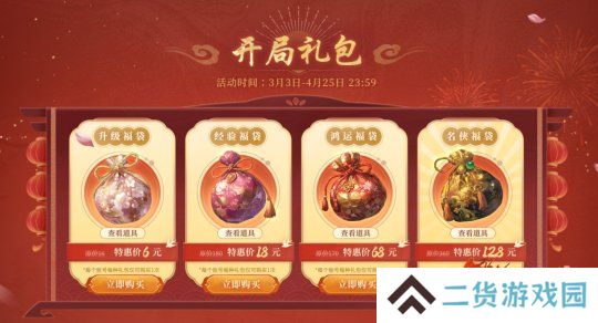 二、特惠开局礼包横扫江湖、低至1折起(3月3日-4月25日)