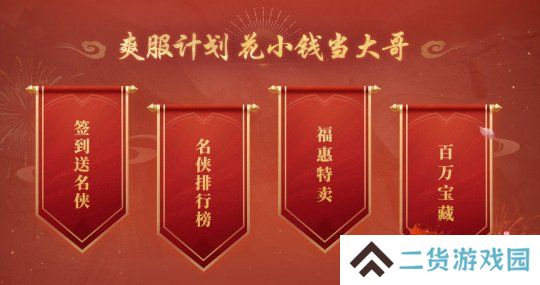 活动期间,每天登录游戏,点击屏幕右侧活动签到按钮,海量签到奖励轻松拿。解锁礼卡更有额外惊喜,从洗髓经到饰品礼盒再到名侠简录、海量金锭,持续签到,惊喜不断!