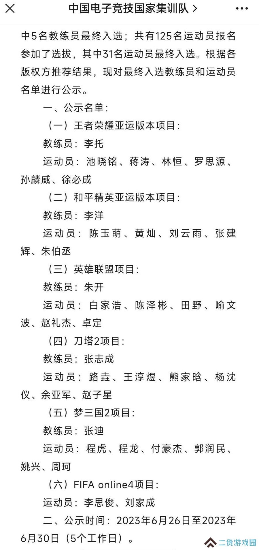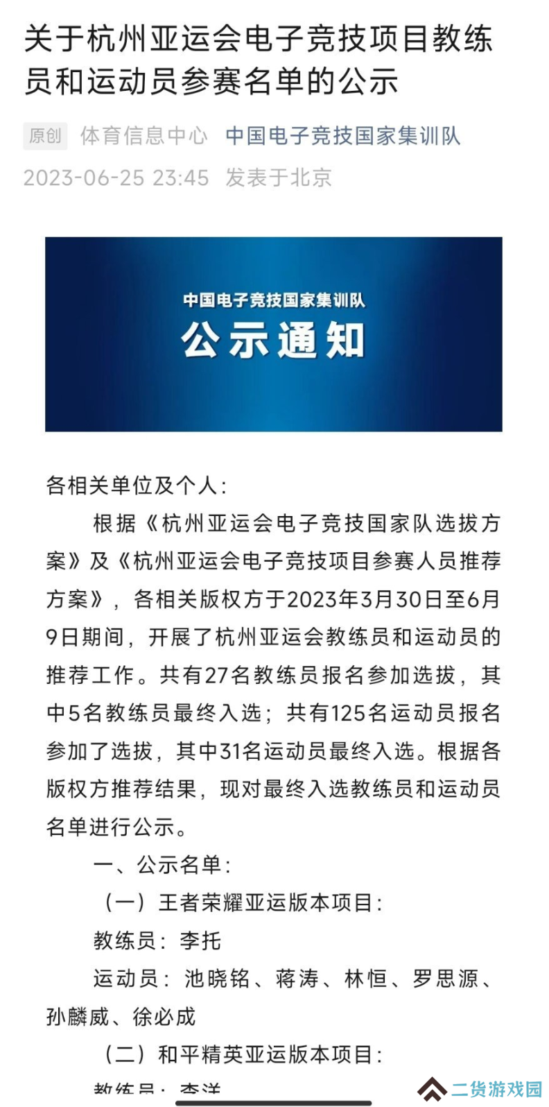 2023年lol亚运会中国队阵容名单公布,昨日中国电子竞技国家集训队公示了亚运会参赛名单,一起来看看最终入围的选手是哪些人吧。