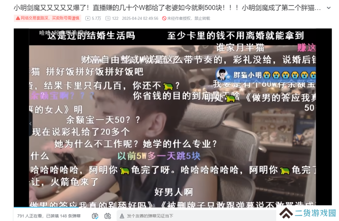他老婆“伦姐”本人其实并没有什么稳定工作(据说),家里大部分经济来源都是小明剑魔。不仅如此,小明剑魔还把彩礼(28万)和婚后赚的钱(去年12月结婚)大概70万都交给了她。