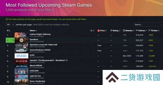 日前,在Steam“最受关注的未发布游戏”榜单上,《丝之歌》力压V社的《DeadLock》冲上了第一位。而在这份榜单上的作品,普遍都是未公布发售日期的话题作品。