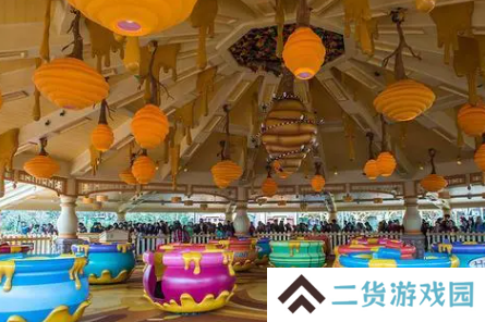 旋转疯蜜罐:旋转疯蜜罐是一个小孩和大人都适合玩的项目,它是以小熊维尼为题材,在一个大的“蜂巢”中,游客们可以坐在不同的“蜂蜜罐”里旋转。