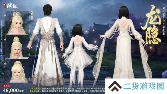 豪华版礼盒:售价48,000通宝内含成衣+定制黑发+同款定制金发,不绑定版3月6日20:15限量上架500份。