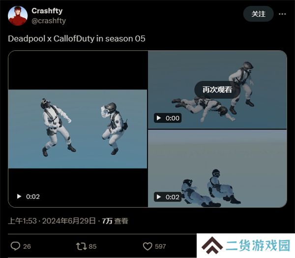使命召唤即将与死侍和金刚狼电影联动! 据Dot Esports报道,近日一位名为Crashfty的推特用户泄露了一些有趣的视频,声称使命召唤:现代战争3、战区和战区手游将与超级英雄电影死侍和金刚狼展开跨界联动。据称,死侍角色将获得新的处决动作。这意味着2024年最受期待的电影之一可能会成为游戏的联动对象之一。