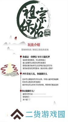 祖宗保佑是一款文字类型的休闲手游,游戏中玩家做为一名家族的先祖,必须保证自己独特的方法将自己所属的家族进行经历各类朝代更替过后,仍然能够长盛不衰的繁衍下去,一旦后代子孙中有叛逆的出现,玩家必须马上采取行动劝阻,不然就会产生各种的处罚方式,影响家族的血脉延续。