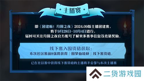 由32名主播参与的《团建啦!月圆之夜》9月团建赛来袭,团建赛将于9月28日-10月4日进行,届时可关注官方账号了解更多赛事资讯,并且参与获取竞猜福利奖励。